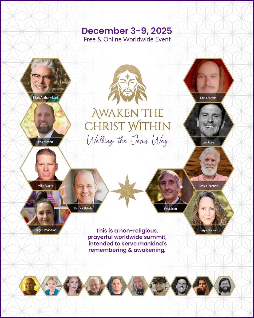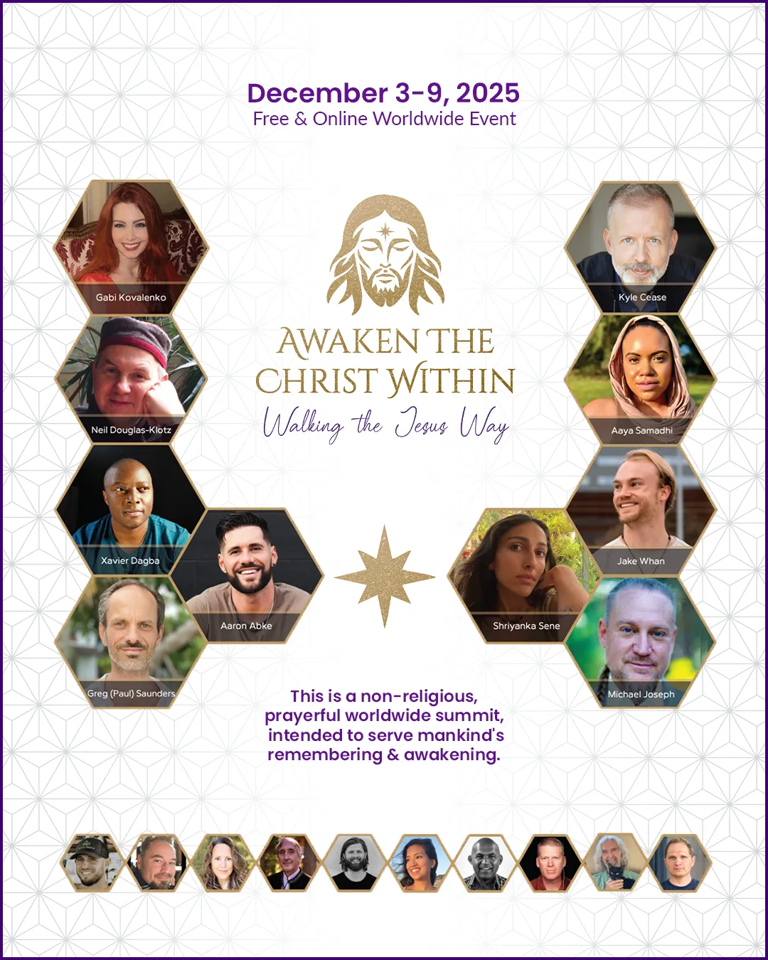 The Awaken The Christ Within Summit (Dec 3-9, 2025) is a non-religious, worldwide gathering of truth seekers, the spiritually-awakening, and all who seek a deepened embodiment of who they truly are, from the inside out.